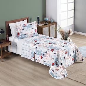 01 colcha solteiro 2,40m x 1,60m 01 porta travesseiros estampados 80 cm x 55 cm