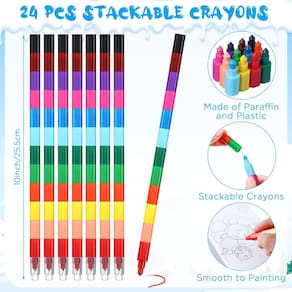 Nossos lápis de arco-íris empilháveis e montáveis são feitos de parafina e plástico. O comprimento total dos lápis de cor com tampa transparente é de 10,04 polegadas, você pode alterar a posição da cor e o comprimento dos lápis sozinho.