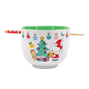 SABOREIE CADA FERIADO Faça de cada refeição uma celebração festiva com este conjunto exclusivo de taças de ramen e pauzinhos. A cena emocionante ganha vida com a Hello Kitty vestida de Papai Noel, colocando alegremente os presentes debaixo de uma árvore de Natal. Para aumentar a alegria natalina, a borda da tigela de ramen é adornada com um padrão colorido de enfeites que complementa perfeitamente o design sazonal. Emparelhado com a tigela está um conjunto de pauzinhos de madeira reutilizáveis, com um envoltório festivo nas pontas. TRAZ PERSONALIDADE À SUA MESA Este conjunto encantador traz o calor e a magia da temporada para a hora das refeições. Se você está saboreando macarrão, curry, bolinhos ou outro de seus pratos favoritos, este conjunto de tigela de ramen e pauzinhos rapidamente se tornará sua maneira favorita de desfrutar de refeições durante a época mais maravilhosa do ano. Sinta-se um pouco mais alegre a cada mordida usando este conjunto de louças de ramen oficialmente licenciado, inspirado no mundo festivo da Sanrio. INSTRUÇÕES DE CUIDADO Fácil de cuidar. Lavável na máquina de lavar louça. Os pauzinhos podem ser lavados apenas à mão.