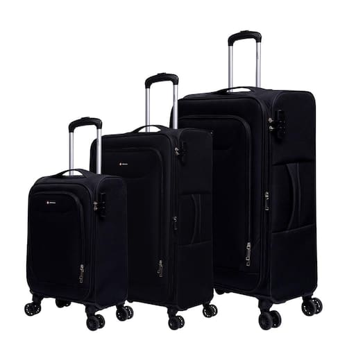As malas médias e grandes são expansíveis, oferecendo mais espaço sempre que necessário, e contam com pés de apoio para maior estabilidade.