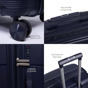 Fabricada em polipropileno, esta mala é resistente e durável, equipada com 4 rodas duplas 360 que proporcionam fácil manobrabilidade. Possui cadeado fixo com senha para segurança, carrinho para maior conforto e alças de mão e lateral (nas versões M/G). No interior, conta com cinta elástica e divisória em zíper para manter tudo organizado. Além disso, o tamanho P é aprovado pela Agência Nacional de Aviação Civil (ANAC) para ir à bordo, tornando-a a escolha perfeita para suas viagens.