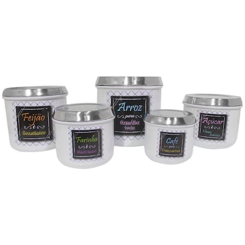 Conjunto De Mantimentos Branco Decorado Em Alumínio Para Cozinha 5 Peças -