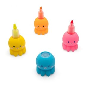 Conjunto empilhável 3 marcadores em formato de polvo com tampa azul prática.