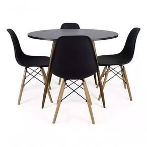 Conjunto de Mesa Redonda Eames 100cm Preto + 4 Cadeiras Eiffel Dsw Preto