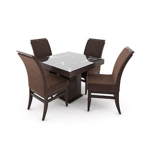 Características: Marca: Talismã Modelo: Santiago Matéria Prima Mesa: MDF Matéria Prima Cadeira: MDF e Madeira Eucalipto Revestimento Tampo: MDF Revestido Revestimento Pés: Pintura PU Acabamento Tampo: MDF Revestido Fosco e Vidro Marmorizado Acabamento Cadeira: Pintura PU Semi Fosco Tampo: MDF 15mm e vidro 4mm Vidro: Temperado Encosto: Tecido Veludo Revestimento do assento: Tecido Veludo Sistema de montagem: Acompanha Parafuso Philips e Cantoneira para Montagem do Pé da Cadeira. Pés: MDF