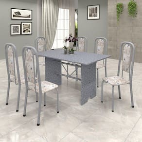 Quer deixar sua casa completa com um toque especial? Uma dica bacana de como transformar sua cozinha, deixando-a mais receptiva e bonita? Então você precisa de móveis indispensáveis para deixar seu lar muito mais aconchegante, receptivo e sempre disponível para receber a visita de amigos, familiares e convidados. Você vai se apaixonar por este incrível Conjunto de Mesa com 6 Cadeiras Lavínea. Ideal para cozinha, ele é a melhor opção para completar o espaço. Aproveite!! Medida da Mesa (A x L x P): 75x75x140cm Peso da Mesa: 85,03 kg Mesa suporta até: 10.0000 Acabamento da Cadeira/Banco: Pintura Texturizada Acabamento da Mesa: Acetinado Almofada do assento: Fixa Ambiente Principal: Cozinha Cadeira/Banco estofada: Sim Cadeira/Banco suporta até: 120.0000 codigo_ean: 7909903233924 Complexidade da Montagem: Baixa: pode ser montado por uma pessoa sozinha Cor: Martelado Pérola/Ocre/Botanic Bege Enchimento do Assento: Espuma D-16 Espessura do Tampo: 15 mm Estrutura do Assento: MDP Itens Inclusos: 1 Mesa, 6 Cadeiras, Kit Ferragens e Manual de Montagem Linha ou Coleção: Lavinea Manual de Montagem e Instalação: https://product-hub-prd.madeiramadeira.com.br/822654/documents/f53172e5-d28a-4df0-a7a1-f628a49421331157912lavinea.pdf Manutenção: Não permitir que molhe os pés da base, usar um pano de tecido macio e seco, evitar detergentes, alvejantes e produtos químicos de limpeza; no tampo usar tecido macio levemente umedecido. Material da Estrutura da Cadeira: Aço Medida da Cadeira/Banco (A x L x P): 108x37x40cm Medida do Tampo (L x C x E): 140x75x1,5cm Necessita Montagem: Sim Peso da Cadeira/Banco: 3,82 kg Possui Apoio para Braços: Não Possui Apoio Para os Pés: Não Possui Suporte Giratório: Não Quantidade de Cadeiras: 6 Quantidade de Lugares: 06 Recomendações de Uso, Manutenção e Limpeza: Não permitir que molhe os pés da base, usar um pano de tecido macio e seco, evitar detergentes, alvejantes e produtos químicos de limpeza; no tampo usar tecido macio levemente umedecido. Revestimento da Cadeira/Banco: Couro Ecológico Sistema de Montagem: Parafusos