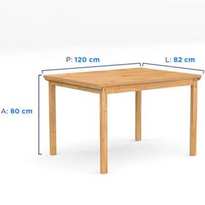 Largura Mesa: 82 cm | Cadeira: 38 cm