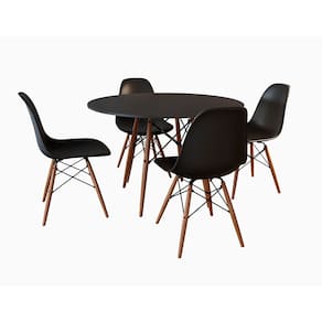 Conjunto De Mesa 4 Cadeiras Pretas Eames Eiffel 90 Cm Base Madeira Tampo PretoNo quesito decoração o Jogo de Mesa 4 Cadeiras Eiffel se destaca pelo design moderno e sofisticado. A Cadeira Eiffel É confeccionada em policarbonato, sua base É em Madeira maciça, o que confere total resistência e conforto, o tampo É confeccionado em MDF com pintura impermeÁvel garantindo melhor durabilidade ao produto, sua base É em Madeira maciça. O Jogo de Mesa 4 Cadeiras Eiffel da vida ao ambiente alÉm de combinar com todos os tipos e cores de mÓveis.Dimensões:Cadeira:Altura: 80,5 cmLargura: 46,5 cmProfundidade: 42 cmAssento x Ch ão: 46 cmContÉm: 04 cadeirasPeso mÁximo suportado: 120 KgMesa:Altura: 73 cmDiâmetro: 90 cmObs: Imagens Meramente Ilustrativas