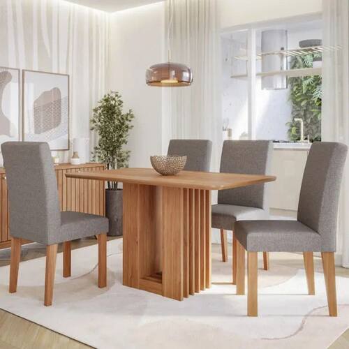 Conjunto de mesa 4 Cadeiras Tampo MDF com Assento Estofado Cimol