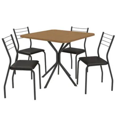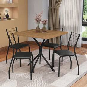 Design moderno e funcional O conjunto conta com 4 cadeiras revestidas em corino preto, que proporcionam um visual contemporâneo e sofisticado, além de serem fáceis de limpar no dia a dia. O formato quadrado da mesa facilita a disposição em diferentes ambientes, seja em cozinhas, salas de jantar ou espaços gourmet. Ideal para quem gosta de praticidade sem abrir mão da estética.