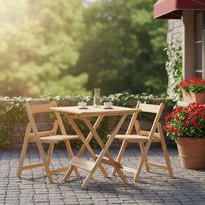 Este conjunto de mesa e cadeiras é o resultado de mais de 10 anos de experiência na produção de móveis dobráveis. Por isso, é a escolha certa para você que busca um móvel exclusivo que alie qualidade, beleza e segurança. A Mesa Suporta Até: 80 kg Acompanha Cadeiras: 02 Acompanha Espreguiçadeira: Não Altura Ajustável: Não Altura das Cadeiras Até o Chão: 45 cm Altura do Conjunto: cm Ambiente Principal: Jardim e Varanda Base Antiderrapante: Não Cada Cadeira Suporta Até: 120 kg Cadeira Estofada: Não codigo_ean: 7900288221735 Cor: Natural Cor do Produto: Natural Dimensões de Cada Cadeira: 41cm x 60cm x 79cm Itens Inclusos: 1 Mesa e 2 Cadeiras Largura do Conjunto: cm Manual de Montagem e Instalação: https://product-hub-prd.madeiramadeira.com.br/187921768/documents/a8fb9318-30ef-460d-8ebe-57e712e222e33167602656817564079768043.pdf Marca: Marcenaria Real Material da Base da Mesa: Madeira Maciça Material do Tampo: Madeira Maciça Material Principal: Madeira Eucalipto Medida do Tampo: 70 cm x 70 cm Medidas da Base da Mesa: 77 cm x 70 cm x 70 cm Medidas da Mesa: 77 cm x 70 cm x 70 cm Mesa Dobrável: Sim Necessita Montagem: Não Origem do Produto: Nacional Peso da Mesa: 12 kg Peso de Cada Cadeira: 5 kg Possui Apoio para os Braços: Não Possui Suporte para Copo: Não Possui travamento: Sim Profundidade do Conjunto: cm Recomendações de uso: Limpar apenas com pano úmido, não utilizar produtos abrasivos Resistência à Água: Não Tampa com orifício removível: Não Tipo de Madeira Maciça da Base da Mesa: Eucalipto Tipo de Madeira Maciça do Tampo: Eucalipto Marca: Não Informado