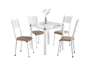 A mesa conta com uma estrutura robusta em aço e um tampo de vidro temperado, que garante alta durabilidade e uma limpeza muito mais simples e rápida. Além disso, as cadeiras possuem acabamento em pintura epóxi eletrostática, oferecendo resistência superior contra o desgaste e mantendo o aspecto de novo por muito mais tempo.
