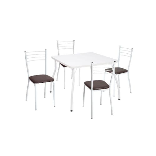 Que tal renovar a sua sala de jantar com um conjunto de mesa e cadeiras que combina beleza, conforto e qualidade? O Conjunto de Mesa com 4 Cadeiras Fil Móveis 13|1080 é a escolha ideal para você. Ele possui uma mesa retangular com tampo de MDF e pés de madeira maciça, que garantem resistência e durabilidade. As cadeiras são estofadas com tecido suede marrom, que oferece maciez e elegância. O design moderno e clean desse conjunto vai deixar o seu ambiente mais charmoso e aconchegante. Ean: 751320915665