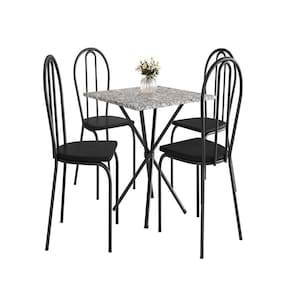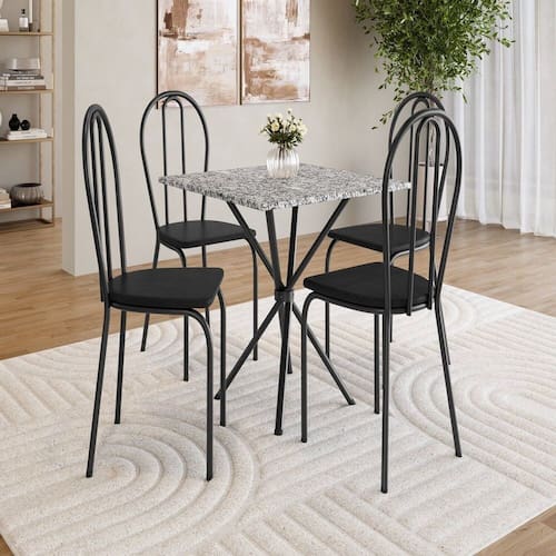 Conjunto de Mesa Leia com 4 Cadeiras e Tampo em Granito – Sofisticação e Durabilidade para sua Cozinha ou Espaço Gourmet