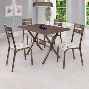 +Que+tal+deixar+sua+cozinha+ainda+mais+bonita+com+O+Conjunto+de+Mesa+e+Cadeiras+Luna%3F+Ele+possui+um+designer+moderno%2C+com+tampo+de+BP+Carvalho+Montreal+de+1%2C20cm%2C+possui+textura+em+3D+%28que+imita+a+madeira+natural%29%2C+mais+leve+permitindo+a+movimenta%E7%E3o+para+limpeza+do+piso+e+revestimento+dupla+face.+Suas+4+Cadeiras+possuem+assento+anat%F4mico+e+sistema+de+fixa%E7%E3o+com+porca+agarras%2C+que+proporcionam+maior+conforto+e+comodidade.+Al%E9m+disso+suas+ponteiras+de+prote%E7%E3o+interna+nos+p%E9s%2C+que+garante+maior+prote%E7%E3o+contra+riscos+e+ferrugem. Medida da Mesa (A x L x P): 76cm x 80cm x 120cm Peso da Mesa: 16 kg Mesa suporta até: 10 kg Acabamento da Cadeira/Banco: Pintura Epóxi Acabamento da Mesa: Pintura Epóxi Almofada do assento: Removível Cadeira/Banco estofada: Sim Cadeira/Banco suporta até: 100 kg calculo: unidade Complexidade da Montagem: Baixa: pode ser montado por uma pessoa sozinha Cr: Bronze/Bege Geométrico Cr do Produto: Bronze/Bege Geométrico Enchimento do Assento: Espuma D-14 Escala de Brilho: Semi-Brilho Espessura do Tampo: 30 mm Estrutura do Assento: Estrutura de madeira pinus compensados, porca agarra metálicas, espuma e courino sintético 20mm Estrutura do Encosto: Aço Carbono Formato do Tampo: Retangular Itens Inclusos: 1 Mesa 4 Cadeiras e Manual de Montagem Linha ou Coleção: Luna Manual de Montagem e Instalação: https://cdn2.madeiramadeira.com.br/atributo/m-veis-ciplafe/558408-manual-284-108.pdf Material da Base da Mesa: Aço Material da Estrutura da Cadeira: Aço Carbono Material do Tampo: MDF/MDP Medida da Base (A x L x P): 74cm x 59cm x 75cm Medida da Cadeira/Banco (A x L x P): 91cm x 47cm x 46,5cm Medida do Tampo (L x C x E): 80cm x 120cm x 3cm Necessita Montagem: Sim Origem do Produto: Nacional Peso da Cadeira/Banco: 3 kg Possui Apoio para Braços: Não Possui Apoio Para os Pés: Não Quantidade de Lugares: 04 Recomendações de Uso, Manutenção e Limpeza: Limpar com pano levemente umedecido. Não usar produtos abrasivos que possam danificar a superfície do móvel. Revestimento da Cadeira/Banco: Sistema de Montagem: Parafusos status-cadastro: Aprovado Tamanho: