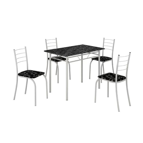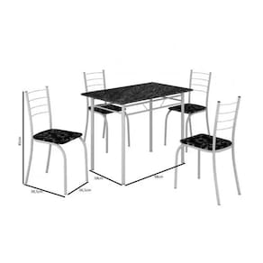 Conjunto de Mesa Com 4 Cadeiras Rio Base Realeza Tampo em MDP Preto/Branco - Teixeira Móveis