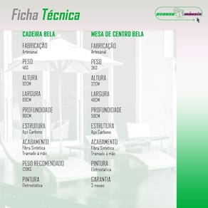 Conjunto De Mesa De Centro E 2 Cadeiras Bela Para área Externa Tabaco Cadeira de Area Externa Bela de Aco Carbono e Fibra Sintetica A Cadeiras Bela e uma peca que encanta pela combinacao perfeita de elegancia, resistencia e conforto. Fabricada em aco carbono de alta qualidade e com pintura eletrostatica em po (epoxi), garante um acabamento impecavel e duravel. O encosto e assento possui acabamento em fibra sintetica com protecao UV, proporciona um toque acolhedor e sofisticado. Alem de contar com tratamento contra os raios solares. A cadeira bela e perfeita para qualquer ambiente da casa, seja na varanda, cozinha, area externa, churrasqueira, edicula, piscina ou jardim. ESPECIFICACOES TECNICAS: -Material da Estrutura: Aco Carbono; -Material do Assento: Fibra sintetica; -Material do Encosto: Fibra sintetica; -Acabamento: Protecao UV; -Quantidade de Lugar: 1 Lugar; -Quantidade de Cadeira: 2 Cadeiras; -Dobravel? Nao; -Necessita de Montagem: Nao; -Instrucoes de Cuidado: Utilize Sabao Neutro para a limpeza das fibras e estruturas.; -Dimensoes do Produto (LarguraXProfundidadeXAltura): 69x83x92cm;