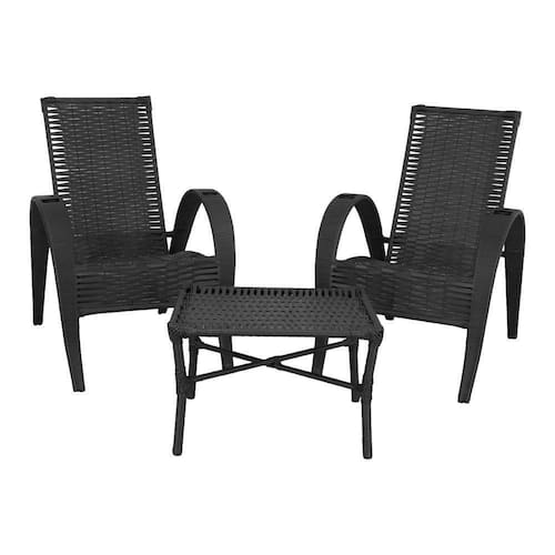 Conjunto De Mesa De Centro E 2 Cadeiras Vitória Para área Preto Cadeira de Area Externa Vitoria de Aco Carbono e Fibra Sintetica A Cadeira Vitoria oferece conforto e sofisticacao para o seu espaco de lazer! Fabricada em aco carbono de alta qualidade, com acabamento em fibra sintetica sendo totalmente revestido. A cadeira Vitoria e perfeita para o seu descanso e receber seus amigos e familiares em festas e almocos aos finais de semana. ESPECIFICACOES TECNICAS: -Material da Estrutura: Aco Carbono; -Material do Assento: Fibra sintetica; -Material do Encosto: Fibra sintetica; -Quantidade de Lugar: 1 Lugar; -Quantidade de Cadeira: 1 Cadeira -Dobravel? Nao; -Peso Total Suportado: 120kg; -Garantia: 3 Meses; -Necessita de Montagem: Nao; -Instrucoes de Cuidado: Limpar com pano umedecido e sabao neutro; -Dimensoes do Produto (LarguraXProfundidadeXAltura): 65x80x88cm; -Conteudo da Embalagem: 2 Cadeira;