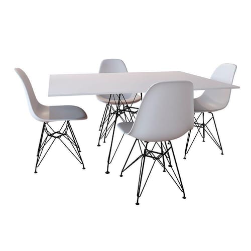Conjunto De Mesa Eames Eiffel De Ferro Preto Tampo Branco 120x75 4 Cadeiras Ferro Preta Assento Branco O Jogo de Mesa 4 Cadeiras Eames Eiffel se destaca pelo design moderno e sofisticado. A Cadeira Eames Eiffel é confeccionada em polipropileno, sua base é em ferro, o que confere total resistência e conforto. O Jogo de Mesa 4 Cadeiras Eames Eiffel da vida ao ambiente além de combinar com todos os tipos e cores de móveis. CARACTERISTICAS Tipo: Conjunto Modelo: Eiffel Base: Ferro na cor Preta DIMENSÕES DO PRODUTO Cadeira Cor: Branco Altura: 85 cm Largura: 47 cm Profundidade: 50 cm Assento x Chão: 45 cm Contém: 04 cadeiras Mesa: Cor: Branco Altura: 76 cm Largura: 120 cm Profundidade: 75 cm Obs: Imagens Meramente IlustrativaConjunto de Mesa Eames Eiffel de Ferro Preto Tampo Branco 120x75 4 Cadeiras Ferro Preta Assento Bran