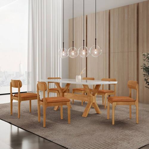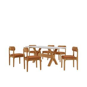Conjunto de Mesa de Jantar Bellini Tampo 180cm Laqueado Canto Moeda 6 Cadeiras Bellini Star caramelo / Imbuia Natural / Cinamomo Imbuia/ - Branco