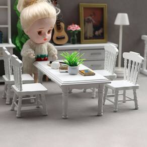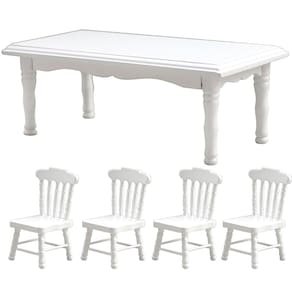 Material: bétula Peso: 200 g Dimensões: Mesa: comprimento 14,6 cm x largura 7,1 cm x altura 5,6 cm; cadeira: comprimento 4,3 cm x largura 4,3 cm x altura 8,1 cm Charmoso conjunto de jantar em miniatura: este conjunto de 5 peças inclui uma mesa de madeira branca e quatro cadeiras combinando, projetadas para casas de bonecas em escala 1/12, perfeito para cenas realistas de sala de jantar. Artesanato durável e detalhado: feito de madeira de bétula de alta qualidade, este conjunto apresenta detalhes intrincados com construção robusta, oferecendo durabilidade e uma aparência encantadora. Perfeito para brincar de fingir: ideal para brincadeiras criativas, este conjunto de jantar incentiva as crianças a criarem suas próprias cenas de sala de jantar em casas de bonecas em miniatura, aprimorando as habilidades criativas. Não é um brinquedo para crianças pequenas: observe que este é um modelo de brinquedo, não destinado ao uso real por crianças. Peças pequenas podem apresentar risco de asfixia, por isso é importante ficar longe do alcance de crianças pequenas. Serve para casas de bonecas em escala 1/12: este conjunto foi projetado para caber em casas de bonecas em escala 1/12 e é um ótimo complemento para qualquer casa de bonecas ou coleção de móveis em miniatura para colecionadores e crianças.