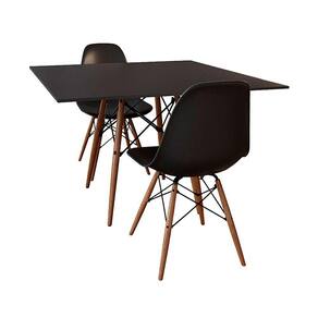 Conjunto de Mesa de Jantar Eames Eiffel Quadrada 90cm Tampo de Madeira Preto com 2 Cadeiras PretasO Jogo de Mesa 2 Cadeiras Eames Eiffel Se Destaca Pelo Design Moderno e Sofisticado. a Cadeira Eames É Confeccionada em Policarbonato, Sua Base É em Madeira Maciça, o Que Confere Total Resistência e Conforto, o Tampo da Mesa É Confeccionado em Mdf com Pintura Impermeável Garantindo Melhor Durabilidade Ao Produto, Sua Base É em Madeira Maciça. Esse Conjunto da Vida Ao Ambiente Além de Combinar com Todos Os Tipos e Cores de Móveis.Informações Técnicas Conjunto:Modelo: Eames EiffelConteúdo da Embalagem: 01 Mesa e 02 Cadeiras (Embalados Separadamente).Instruções/cuidados: Limpar com Pano Seco ou Levemente Umedecido com Água.Necessita de Montagem? Sim.Mesa:Tipo: QuadradaCor: Preto Tampo: MadeiraAltura: 76cmLargura: 90cmProfundidade: 90cmCadeiras:Cor: Preta Altura: 85 CmLargura: 47 CmProfundidade: 50 CmAssento X Chão: 45 Cm***Obs: As Imagens Representam o Produto Real, Porém Podem Apresentar Algumas Pequenas Variações de Cores, Dependendo do Monitor/tela.