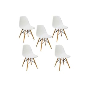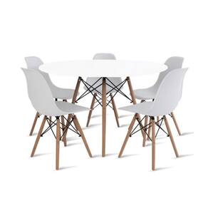 O Conjunto de Mesa de Jantar Eames Eiffel é a combinação perfeita de elegância e funcionalidade. Com uma mesa redonda de 110cm de diâmetro e tampo em MDF branco, ele traz um toque de sofisticação e luminosidade para sua sala de jantar. A base da mesa e das 5 cadeiras Eiffel são em madeira maciça, garantindo durabilidade e resistência. As cadeiras, com assento em polipropileno, oferecem conforto e um design atemporal que se adapta facilmente a qualquer ambiente.