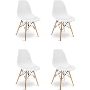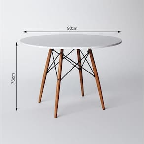 Conjunto de Mesa de Jantar Eames Eiffel Redonda 90cm Tampo de Madeira Branco com 4 Cadeiras Brancas O Jogo de Mesa 4 Cadeiras Eames Eiffel se destaca pelo design moderno e sofisticado. A Cadeira Eames é confeccionada em policarbonato, sua base é em Madeira maciça, o que confere total resistência e conforto, o tampo da mesa é confeccionado em MDF com pintura impermeável garantindo melhor durabilidade ao produto, sua base é em Madeira maciça. O Jogo de Mesa 4 Cadeiras Eames Eiffel da vida ao ambiente além de combinar com todos os tipos e cores de móveis. Tipo: Conjunto Modelo: Eames Eiffel Dimensões do Produto: Cadeira Cor: Branco Altura: 85cm Largura: 47cm Profundidade: 50cm Assento x Chão: 45cm Contém: 4 cadeiras Peso máximo suportado: 120kg Mesa Cor: Branco Altura: 76cm Diâmetro: 90cm Obs: Imagens Meramente Ilustrativa