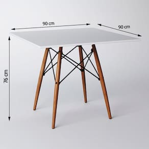Conjunto De Mesa De Jantar Eames Eiffel Quadrada 90cm Tampo De Madeira Branco Com 2 Cadeiras Brancas O Jogo de Mesa 2 Cadeiras Eames Eiffel se destaca pelo design moderno e sofisticado. A Cadeira Eames é confeccionada em policarbonato, sua base é em Madeira maciça, o que confere total resistência e conforto, o tampo da mesa é confeccionado em MDF com pintura impermeável garantindo melhor durabilidade ao produto, sua base é em Madeira maciça. Esse conjunto da vida ao ambiente além de combinar com todos os tipos e cores de móveis. InformaçãÕes técnicas Conjunto: Modelo: Eames Eiffel ConteÚdo da Embalagem: 01 Mesa e 02 Cadeiras (Embalados Separadamente). InstruçãÕes/Cuidados: Limpar com pano seco ou levemente umedecido com água. Necessita de Montagem? Sim. Mesa: Tipo: Quadrada Cor: Branco Tampo: Madeira Altura: 76cm Largura: 90cm Profundidade: 90cm Cadeiras: Cor: Branca Altura: 85 cm Largura: 47 cm Profundidade: 50 cm Assento x Chão: 45 cm ***OBS: As imagens representam o produto real, porém podem apresentar algumas pequenas variaçãÕes de cores, dependendo do monitor/tela.Conjunto de Mesa de Jantar Eames Eiffel Quadrada 90cm Tampo de Madeira Branco com 2 Cadeiras Brancas