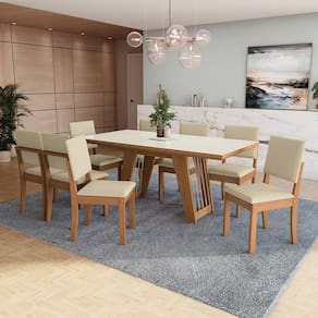 Que tal o Conjunto de Mesa Cinara e Cadeiras Luna? Sua sala de jantar completa e receptiva pede o Conjunto Cinara e Luna na composição. Enquanto a mesa tem estrutura em MDP, promovendo a estabilidade necessária ao uso diário, as cadeiras contam com enchimento em espuma e revestimento em tecido macio - assim a comodidade é garantida desde o cafezinho da manhã até o jantar especial com os amigos. De visual que cria um lar-style sofisticado, as peças têm cor neutra e acabamento amadeirado, o combo perfeito para combinar com os outros móveis do seu cantinho.