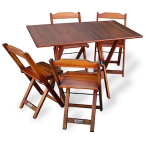 Conjunto De Mesa Dobrável 70x110 Com 4 Cadeiras Imbuia - Tarimatãé ideal para bares, restaurantes, estabelecimentos, áreas de lazer e tambem para sua casa. Em madeira maciça, tornando-os resistentes e duráveis. Seu design permite que esse conjunto seja encaixado em qualquer ambiente, trazendo um toque a mais para seu estabelecimento. Além de sua durabilidade, o que lhe trará conforto para servir seus clientes. Por ser dobrável torna-se mais fácil guardar, manusear e limpar o produto.Atenção: EVITE USAR PRODUTOS ABRASIVOS E QUÍMICOS PARA LIMPEZA DO PRODUTO, aconselha-se o uso de pano umedecido para melhor conservação mantenha o produto fora de chuva e sol constantes.*imagens meramente ilustrativas*Dimensões Mesa:Tampo 67,5 x 108,5 cmAltura 77cmDimensões Cadedeira:Altura da cadeira aberta 78cmAltura da cadeira fechada 89cmAltura até o assento 46cmLargura 41,5cmLargura vão do assento 37,5cmProfundidade 40cmProfundidade do assento 32cmConjunto de Mesa DobrÃvel 70x110 com 4 Cadeiras Imbuia