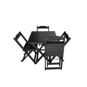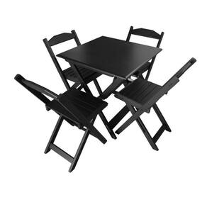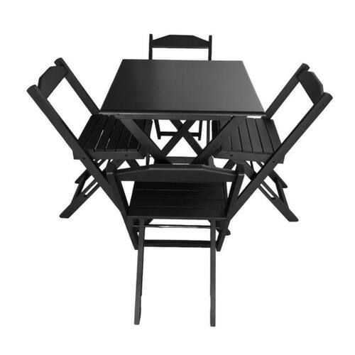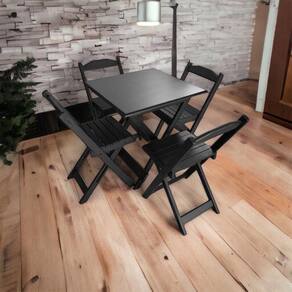 Conjunto de Mesa Dobrável de Madeira 70x70cm Com 4 Cadeiras Preto - Conjunto Dobrável 70x70