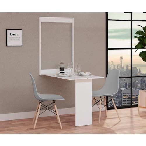 Conjunto Mesa Dobrável/Retrátil de Parede Branca com 2 Cadeiras Eiffel - OpenUp! A Mesa Retrátil da marca OpenUp! Promete ser destaque na decoração do seu ambiente. Versátil e cheia de charme a mesa é perfeita para complementar a sua decoração. Por possui um mecanismo que permite que a mesa seja fixada na parede consegue poupar e otimizar seu espaço. Desse modo é perfeita para apartamentos e casas com o espaço reduzido. O design da Mesa Retrátil complementa a sua decoração, com seus detalhes no estilo clean e funcional ela se torna perfeita para todo o tipo de decoração desde a minimalista até a contemporânea. Além disso, acompanha as Cadeiras Eiffel que são perfeitas para compor a sua decoração e a cadeira ainda proporciona mais conforto, seu assento com uma curvatura ergonômica garante comodidade e bem estar! Possui sua estrutura em MDF BP e o seu tampo também em MDF, material que garante mais qualidade e durabilidade ao produto. As cadeiras possuem seus pés fabricados em madeira europeia e seu assento é feito em polipropileno, garantindo mais qualidade e segurança. Especificações Técnicas: Altura da Cadeira (cm): 82,00 Largura da Cadeira (cm): 45,00 Profundidade da Cadeira (cm): 43,00 Altura do Encosto (cm): 37,00 Altura do Assento (cm): 45,00 Material do Assento: Polipropileno Material da Estrutura: Madeira e Metal Medida Total Aberta: 0,68L x 1,77Ax 1,03P Medida Total Fechada: 0,68L x 1,77A x 0,05P Material da estrutura: 100% MDF BP 15mm Acabamento Pés: Sapatilha de Silicone Material do tampo: MDF BP Escala de brilho: Fosco Recomendações de limpeza: Limpeza com pano úmido. Não deixar o MDF encharcado. Não limpar com materiais abrasivos. Produto desmontado (necessita de montagem): Pré-montado. Necessita de instalação para utilizar. Sistema de Instalação: Buchas / Parafusos / Réguas Inclusos na embalagem. Medida necessária na parede para instalação: 0,84m Largura; 2,00m Altura Manual de Instalação: Incluso na embalagem Garantia: 03 Meses contra defeito de fabricação Peso Suportado: - Mesa 20kg igualmente distribuídos Observações de Entrega Os serviços de entrega são realizados por empresas terceirizadas parceiras assim os entregadores não são autorizados: - Entrar no domicílio, sem estar acompanhado pelo cliente; - Entrar ou subir desacompanhado em prédio residencial ou comercial, o cliente precisa receber o pedido na portaria; - Entregar por meios alternativos (exemplo: içar produto por janela, subir escadas); - Entregar em edifícios, entrega será realizada apenas na portaria; - Realizar montagens, instalação ou manutenção de produtos; - Abrir a embalagem do produto; - Realizar entrega em endereço diferente do que consta na Nota Fiscal; - Realizar entrega a menor de idade ou sem documento de identificação;