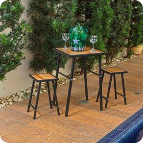Conteúdo do Kit: 1 Mesa Premium e 2 Bancos Material da Estrutura: Aço Material do assento: Madeira Acabamento: Pintura Eletrostática Epóxi com proteção anti-ferrugem de fosfatização Cor: Preto Fosco Estrutura da banqueta e mesa: Tubo Quadrado Medida do tubo banqueta: 20x20mm Medida do tubo mesa: 25x25mm.