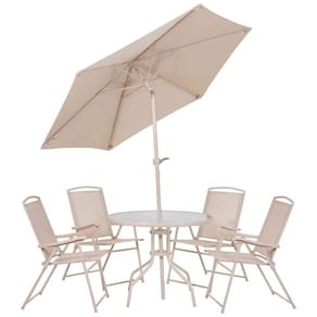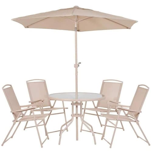 Características TécnicasConjunto de Mesa e Cadeira e Guarda Sol para Jardim em Aço Bege Malibu MOR