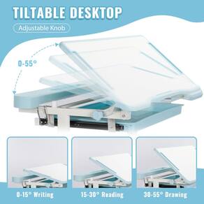 - Mesa inclinável: nossa mesa de estudante possui uma grande mesa de inclinação de ângulo ajustável que pode ser infinitamente ajustada de 0 a 55° para encontrar o ângulo perfeito para escrever, ler ou desenhar; o suporte de leitura de ângulo ajustável permite que as crianças liberem as mãos enquanto aprendem