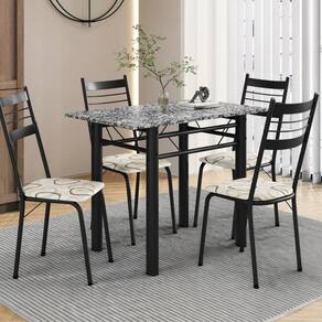 Conjunto Tubular CJ PALMA 2001: estrutura em aço carbono com pintura antiferrugem e tampo de granito ocre 100x60 cm. Cadeiras com assento em MDP espuma D13, revestidas em corvin para máximo conforto e durabilidade. Elegância e resistência ideais para cozinha, área gourmet e lazer! Medida da Mesa (A x L x P): 77X100X60 Peso da Mesa: 6,3 kg Mesa suporta até: 50 kg Acabamento da Cadeira/Banco: Pintura Epóxi Acabamento da Mesa: Pintura Epóxi Ambiente Principal: Cozinha Cadeira/Banco estofada: Somente Assento Estofado Cadeira/Banco Estofada: Somente Assento Estofado Cadeira/Banco Suporta Até: 90.0000 Cadeira/Banco suporta até: 90 kg codigo_ean: 7900288317803 Complexidade da Montagem: Baixa: pode ser montado por uma pessoa sozinha Configuração do Conjunto: Mesa com Cadeiras Cor: Preto/Madeira Cedro/Ocre Cor da Base: Preto Cor das Cadeiras: Preto Cor do Produto: Preto/Madeira Cedro/Ocre Cor do Tampo: Cinza Cor Secundária: Cinza De Canto (Canto Alemão): Não Design da Base: 4 Pés Escala de Brilho: Semi-Fosco Espessura do Tampo: 20 mm Estrutura do Assento: MDP/Espuma Estrutura do Encosto: Aço Carbono Formato do Tampo: Retangular Informações Complementares: embalagem termoecolhivel e papelão Itens Inclusos: 1 Mesa, 4 Cadeiras, Kit Ferragem e Manual de Montagem Linha ou Coleção: Palma Manual de Montagem e Instalação: https://product-hub-prd.madeiramadeira.com.br/834343506/documents/998451b0-4cc2-425b-b1b8-60e9bc411347336798752731769458141158.pdf Marca: Artefamol Material da Base da Mesa: Aço Material da Estrutura da Cadeira: Aço Carbono Material do Tampo: Granito Material Principal: Aço Material Principal das Cadeiras/Bancos: Aço Carbono Medida da Cadeira/Banco (A x L x P): 92X36X40 Medida do Tampo (L x C x E): 100X60X2 Mesa Dobrável: Não Mesa Extensível: Não Montagem Flex: Não Necessita Montagem: Sim Origem do Produto: Nacional Peso da Cadeira/Banco: 2,935 kg Possui Apoio para Braços: Não Possui Apoio Para os Pés: Não Possui Prateleiras: Não Possui Suporte Giratório: Não Possui Vidro: Não Quantidade de Cadeiras: 4 Quantidade de Lugares: 04 Recomendações de Uso, Manutenção e Limpeza: Para manter seu móvel novo por muito mais tempo, evite locais úmidos, mantenha-o distante de líquidos e de fontes de calor. Evite a exposição prolongada ao sol. Para limpá-lo com segurança utilize uma flanela seca sem produtos abrasivos e nem lustra móveis. Sistema de Montagem: Parafusos, buchas, tampa furos Tipo de Encosto: Fixo