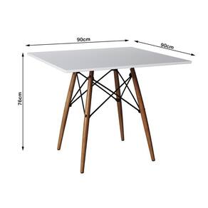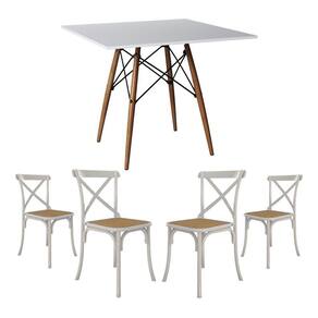 Conjunto De Mesa Eiffel Quadrado Tampo De Madeira 90Cm Branco Com 4 Cadeiras Katrina Branca Assento