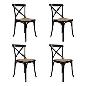 Conjunto De Mesa Eiffel Redondo Tampo De Madeira 110Cm Amêndoa Com 4 Cadeiras Katrina Preto Assento