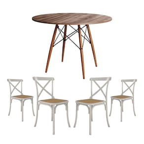 Conjunto De Mesa Eiffel Redondo Tampo De Madeira 90cm Amêndoa Com 4 Cadeiras Katrina Branca Assento