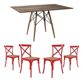 Conjunto De Mesa Eiffel Retangular Tampo De Madeira 120x75cm Amêndoa Com 4 Cadeiras Katrina Azul Tur