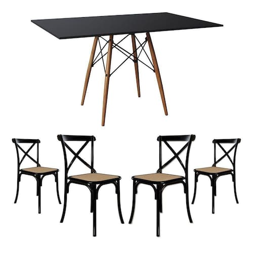 Conjunto De Mesa Eiffel Retangular Tampo De Madeira 120X75Cm Preto Com 4 Cadeiras Katrina Preto