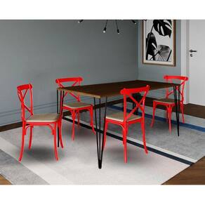 Conjunto De Mesa Elen Retangular Tampo De Madeira 150x90cm Amêndoa Com 4 Cadeiras Katrina Vermelha A - Cor: Marrom