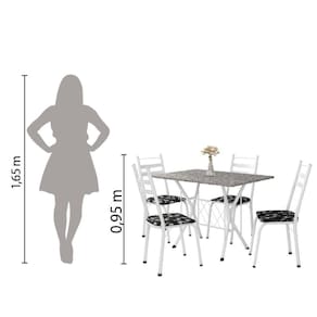 Conjunto De Mesa Itália New Com 4 Cadeiras 1,00m Artefamol Branco/granito Branco / Floral Preto O Conjunto de Mesa Itália New com 4 lugares possui design moderno que se adapta a qualquer ambiente. Contém tampo retangular em granito resistente a altas temperaturas, e as cadeiras são revestidas em tecido corino de fácil limpeza. Ainda conta com base da mesa e cadeiras em aço, garantindo resistência e durabilidade. MEDIDAS: