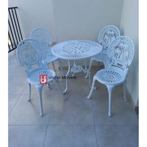 Com o conceito de prático, leve e resistente, o Conjunto Itália com Mesa de 3 Pés e 4 Cadeiras com a estrutura em alumínio fundido e com um lindo designer que combina tanto com o seu jardim quanto sua varanda ou até mesmo sua sala (Porque não!), para ambientes leves e rústicos. Com a "Pintura Eletrostática", que caracteriza-se pela elevada resistência à corrosão, ferrugem e oxidação podendo ser exposto a sol e chuva, e sem falar na praticidade para sua limpeza tornando seu produto com aquele aspecto de novo por muito mais tempo.