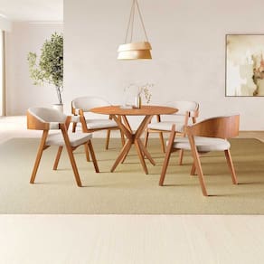 * Acabamento natural que valoriza os Medida da Mesa (A x L x P): 73,5 x 100 x 100 Peso da Mesa: 20 kg Mesa suporta até: 20 kg Acabamento da Cadeira/Banco: Verniz Natural Acabamento da Mesa: Verniz Ambiente Principal: Sala de Jantar Apoio para Braços Estofado: Não Cadeira/Banco Estofada: Encosto e Assento Estofados Cadeira/Banco estofada: Encosto e Assento Estofados Cadeira/Banco Suporta Até: 120.0000 Cadeira/Banco suporta até: 120 kg codigo_ean: 7900288279774 Configuração do Conjunto: Mesa com Cadeiras Cor: Nude/Freijó Cor da Base: Natural Cor das Cadeiras: Bege Cor do Produto: Nude/Freijó Cor do Tampo: Natural Cor Secundária: Marrom De Canto (Canto Alemão): Não Design da Base: Em X Enchimento do Assento: Espuma D-28 Escala de Brilho: Brilhante Espessura do Tampo: 50 mm Estrutura do Assento: Eucalipto Estrutura do Encosto: Linho Formato do Tampo: Redondo Informações Complementares: Utilizar aspirador de pó, escova com cerdas macias ou limpeza a seco. Não utilizar produtos químicos, abrasivos ou limpeza a vapor. Evitar exposição prolongada ao sol. Itens Inclusos: 1 Mesa e 4 Cadeiras Linha ou Coleção: Gaia Manual de Montagem e Instalação: https://product-hub-prd.madeiramadeira.com.br/978530677/documents/61afce8a-c2a9-479e-bc8c-03f64effdc893299227518817617595782055.pdf Marca: Zurc Decor Material da Base da Mesa: Madeira Maciça Material da Estrutura da Cadeira: Madeira Maciça Material do Tampo: Madeira Maciça Material Principal: Madeira Maciça Material Principal das Cadeiras/Bancos: Madeira Maciça Medida da Cadeira/Banco (A x L x P): 80 x 60 x 58 Medida do Tampo (L x C x E): 100 cm Mesa Dobrável: Não Mesa Extensível: Não Necessita Montagem: Não Origem do Produto: Nacional Peso da Cadeira/Banco: 15 kg Possui Apoio para Braços: Sim Possui Apoio Para os Pés: Não Possui Vidro: Não Quantidade de Cadeiras: 4 Quantidade de Lugares: 04 Recomendações de Uso, Manutenção e Limpeza: Utilizar aspirador de pó, escova com cerdas macias ou limpeza a seco. Não utilizar produtos químicos, abrasivos ou limpeza a vapor. Evitar exposição prolongada ao sol. Revestimento da Cadeira/Banco: Linho Tipo de Encosto: Fixo Tipo de Madeira Maciça da Base da Mesa: Eucalipto Tipo de Madeira Maciça do Tampo: Eucalipto Marca: Não Informado