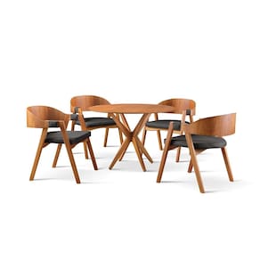Conjunto de Mesa Redonda 100cm com 4 Cadeiras Luna Preto/Freijó - Marrom