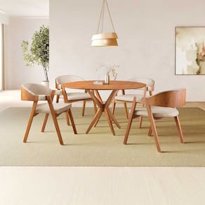 * Acabamento natural que valoriza os Medida da Mesa (A x L x P): 73,5 x 120 x 120 Peso da Mesa: 20 kg Mesa suporta até: 20 kg Acabamento da Cadeira/Banco: Verniz Natural Acabamento da Mesa: Verniz Ambiente Principal: Sala de Jantar Apoio para Braços Estofado: Não Cadeira/Banco Estofada: Encosto e Assento Estofados Cadeira/Banco estofada: Encosto e Assento Estofados Cadeira/Banco suporta até: 120 kg Cadeira/Banco Suporta Até: 120.0000 codigo_ean: 7900288278609 Configuração do Conjunto: Mesa com Cadeiras Cor: Bege Cor da Base: Natural Cor das Cadeiras: Marrom Cor do Produto: Bege Cor do Tampo: Natural Cor Secundária: Marrom De Canto (Canto Alemão): Não Design da Base: Em X Enchimento do Assento: Espuma D-28 Escala de Brilho: Brilhante Espessura do Tampo: 50 mm Estrutura do Assento: Eucalipto Estrutura do Encosto: Linho Formato do Tampo: Redondo Informações Complementares: Utilizar aspirador de pó, escova com cerdas macias ou limpeza a seco. Não utilizar produtos químicos, abrasivos ou limpeza a vapor. Evitar exposição prolongada ao sol. Itens Inclusos: 4 Cadeiras e 1 Mesa Manual de Montagem e Instalação: https://product-hub-prd.madeiramadeira.com.br/910015216/documents/a1b18c30-977c-4d09-9ef2-e2cabff4969f3299584518817617626232559.pdf Marca: Zurc Decor Material da Base da Mesa: Madeira Maciça Material da Estrutura da Cadeira: Madeira Maciça Material do Tampo: Madeira Maciça Material Principal: Madeira Maciça Material Principal das Cadeiras/Bancos: Madeira Maciça Medida da Cadeira/Banco (A x L x P): 80 x 60 x 48 Medida do Tampo (L x C x E): 120 x 120 x 5 Mesa Dobrável: Não Mesa Extensível: Não Necessita Montagem: Não Origem do Produto: Nacional Peso da Cadeira/Banco: 15 kg Possui Apoio para Braços: Sim Possui Apoio Para os Pés: Não Possui Vidro: Não Quantidade de Cadeiras: 4 Quantidade de Lugares: 04 Recomendações de Uso, Manutenção e Limpeza: Utilizar aspirador de pó, escova com cerdas macias ou limpeza a seco. Não utilizar produtos químicos, abrasivos ou limpeza a vapor. Evitar exposição prolongada ao sol. Revestimento da Cadeira/Banco: Linho Tipo de Encosto: Fixo Tipo de Madeira Maciça da Base da Mesa: Eucalipto Tipo de Madeira Maciça do Tampo: Eucalipto Marca: Não Informado
