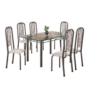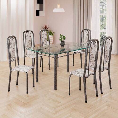 Conjunto de Mesa Retangular 140x75cm Tampo de Vidro 6 Cadeiras Lavínea Arabesco/ Mart Prata