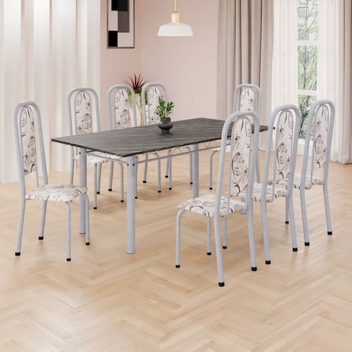 Este conjunto de mesa retangular e 8 cadeiras oferece estilo e praticidade. Com estrutura tubular em aço para estabilidade, o tampo em pedra ardósia adiciona sofisticação e resistência a riscos e manchas. As cadeiras combinam harmoniosamente com a mesa, garantindo conforto com estofamento. Ideal para diversos espaços, é perfeito para receber convidados ou desfrutar de refeições em família, criando um ambiente acolhedor e elegante. Medida da Mesa (A x L x P): 75,8 cm x 75 cm x 180 cm Peso da Mesa: 63,2 kg Mesa suporta até: 10 kg Acabamento da Cadeira/Banco: Pintura Texturizada Acabamento da Mesa: Pintura Texturizada Ambiente Principal: Sala de Jantar Cadeira/Banco estofada: Somente Assento Estofado Cadeira/Banco suporta até: 120 kg Complexidade da Montagem: Baixa: pode ser montado por uma pessoa sozinha Cor: Arabesco/ Mart Pérola Cor do Produto: Arabesco/ Mart Pérola Escala de Brilho: Semi-Brilho Espessura do Tampo: 15 mm Estrutura do Assento: Assento em MDP de 15mm c/ couríssimo. Itens Inclusos: 1 Mesa, 8 Cadeiras, Manual De Montagem E Ferragens. Linha ou Coleção: Lavínea Manual de Montagem e Instalação: https://product-hub-prd.madeiramadeira.com.br/917739/documents/2e6a033c-41c3-47cb-9610-bed7548c39902040422524617181286421905.pdf Material da Base da Mesa: Aço Material da Estrutura da Cadeira: Aço Material do Tampo: Ardósia Medida da Cadeira/Banco (A x L x P): 108 cm x 37 cm x 40 cm Medida do Tampo (L x C x E): 75 cm x 180 cm x 1,5 cm Necessita Montagem: Sim Origem do Produto: Nacional Peso da Cadeira/Banco: 3,82 kg Possui Apoio Para os Pés: Não Quantidade de Lugares: 08 Recomendações de Uso, Manutenção e Limpeza: Usar um pano de tecido macio e seco, evitar detergentes, alvejantes e produtos químicos de limpeza; no tampo usar tecido macio levemente umedecido. Sistema de Montagem: Parafusos